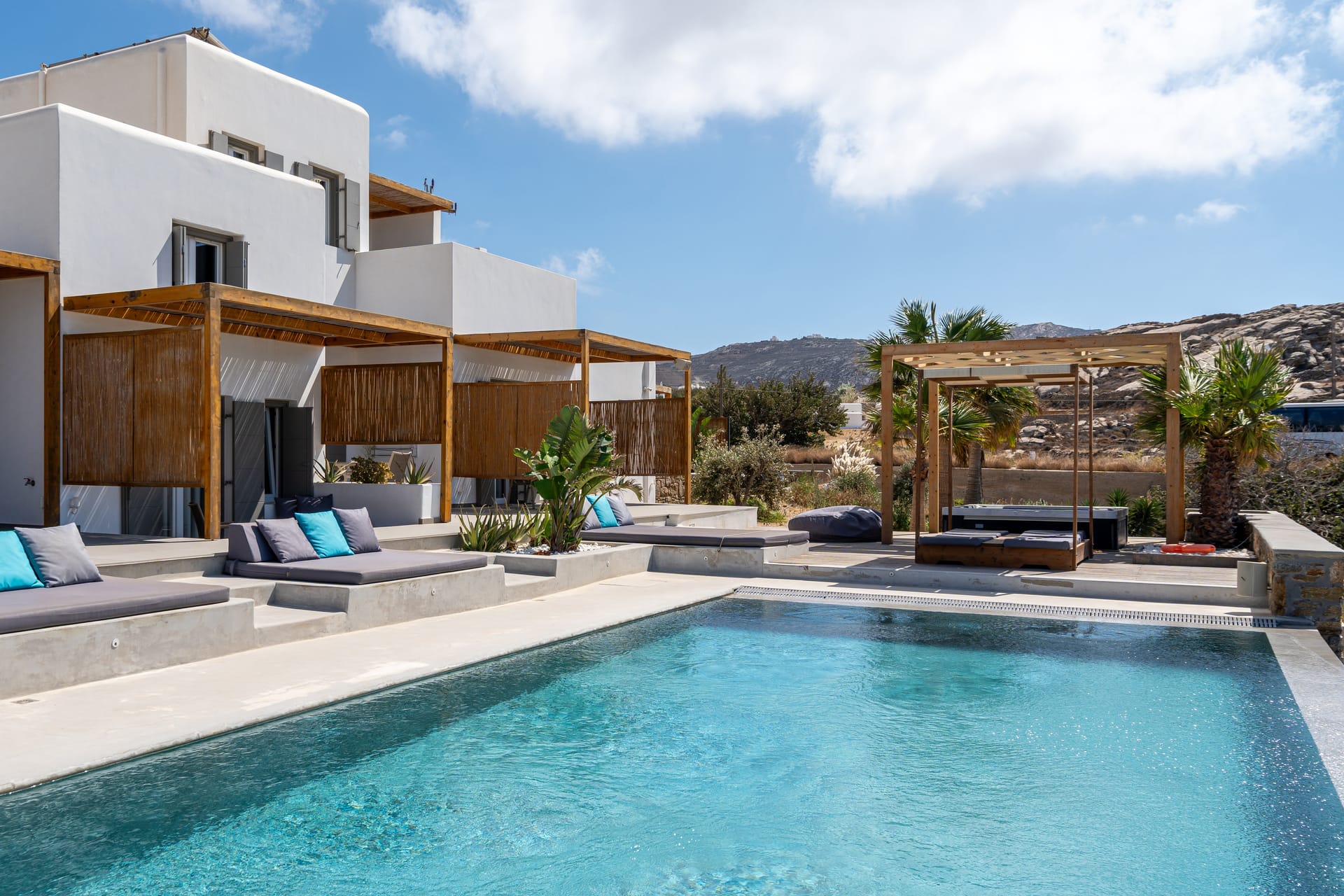 Casa di Pietra is a Mykonian Boutique Hotel, inspired by the lifestyle of the local summer houses, made to offer high-quality leisure time that includes relaxation by the pool, rich local food and get-together habits, like cooking with your beloved ones.